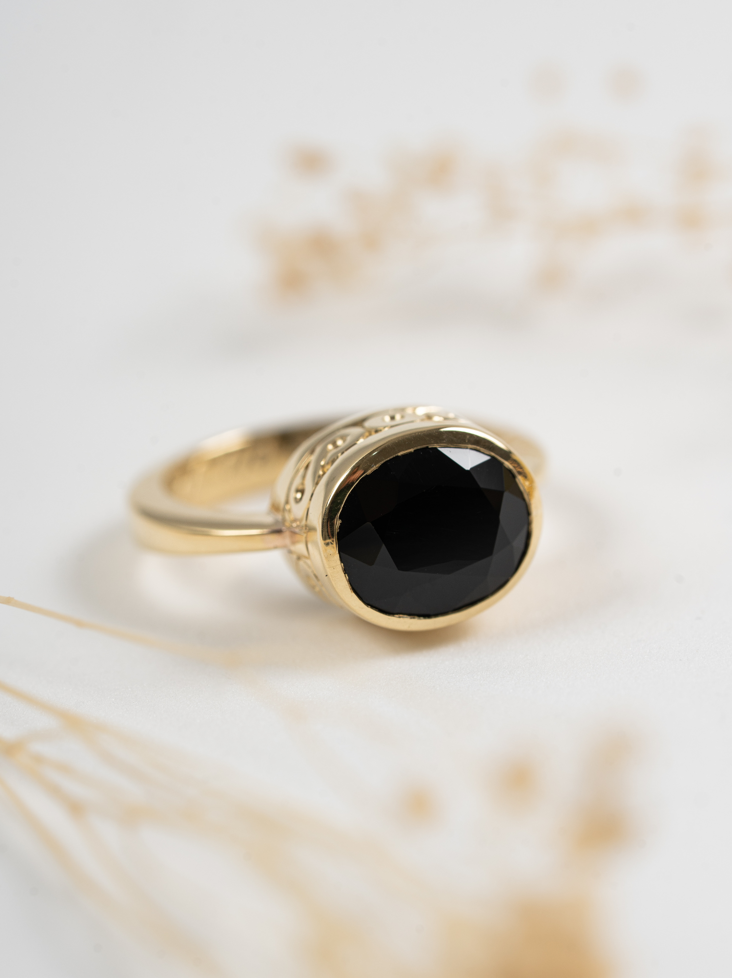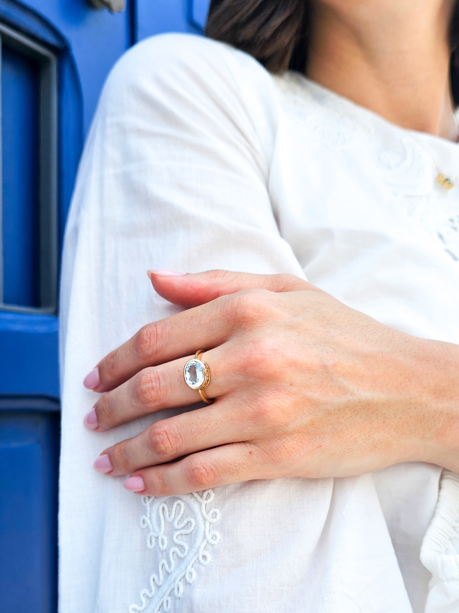 Anillo de oro 18k personalizado con gemas naturales. El anillo Sofía es un ícono en Cerinea, cada uno es realizado especialmente para cada cliente ya que engarzamos gemas naturales. Existen en dos tamaños, con gema oval de 10 mm aproximadamente de largo, o 7 mm aproximadamente de largo. A lo largo de estos años cada persona eligió diferentes gemas naturales (Citrino, Esmeralda,Topacio, Cianita, Peridoto, Amatista, Topacio, Aguamarina, Turmalina) para darle vida y hacer propio su Sofía. Lleva una guarda en la virola que engarza la piedra simulando un infinito, y este dibujo está realizada completamente a mano con buril en cada Sofía, además de ser el toque que hace muy especial este anillo, las perforaciones permiten que le entre luz a la gema y pueda lucirse en su esplendor. Es un diseño que puedes personalizar eligiendo el tamaño, la gema y el color del oro que te gustaría. El precio que ves del anillo Sofia es referencial, su precio puede variar de acuerdo a la gema y al tamaño que elijas, como así también el talle de anillo que seas. Para tener una cotización actualizada y personalizada del anillo Sofia, escríbenos al WhatsApp. ¿Qué incluye tu compra?